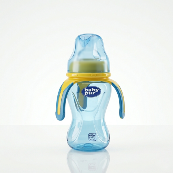 - Triple anse innovante, enrobée d’une matière souple, conçue pour une préhension aisée par les petites mains.